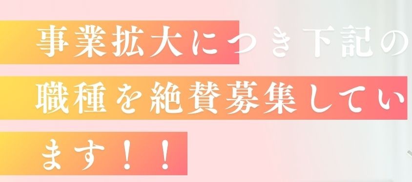 当法人では、事業拡大につき下記の職種を絶賛募集しています!!