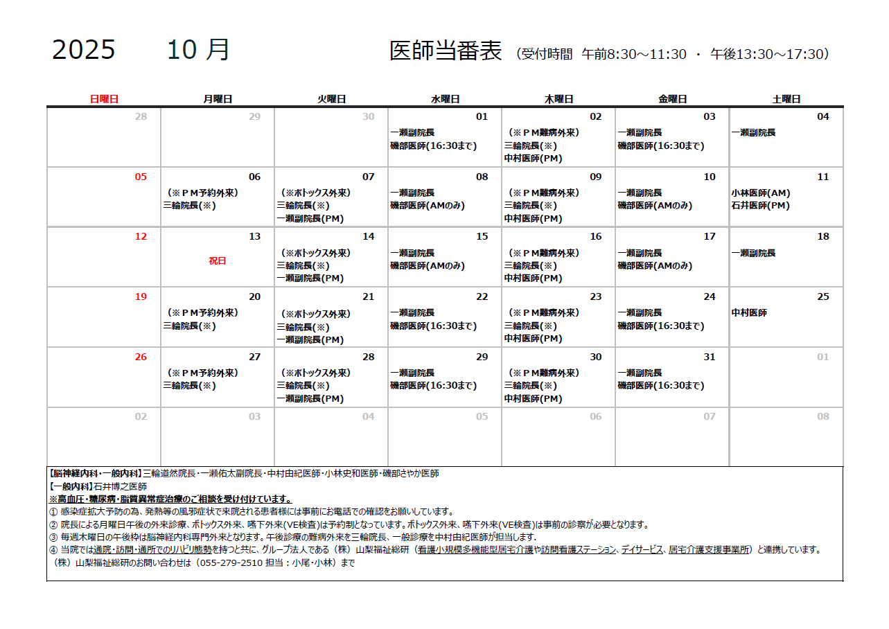 2025年10月医師当番